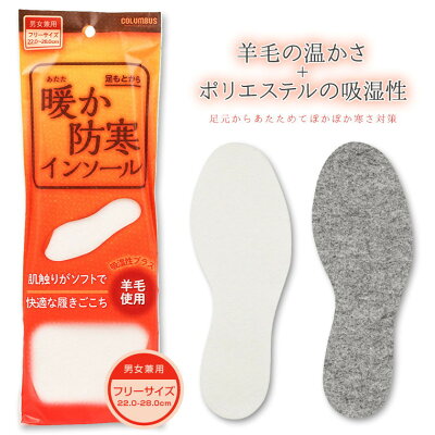 COLUMBUS 暖か防寒インソール メンズ レディース 暖かい 羊毛使用 吸湿性 ウール 男性用 女性用 ビジネスシューズ パンプス スニーカー 冬 寒さ対策 冷え性 あったか 蒸れにくい 疲れにくい 大きいサイズ 小さいサイズ フリーサイズ 男女兼用 col-boukan-insole
