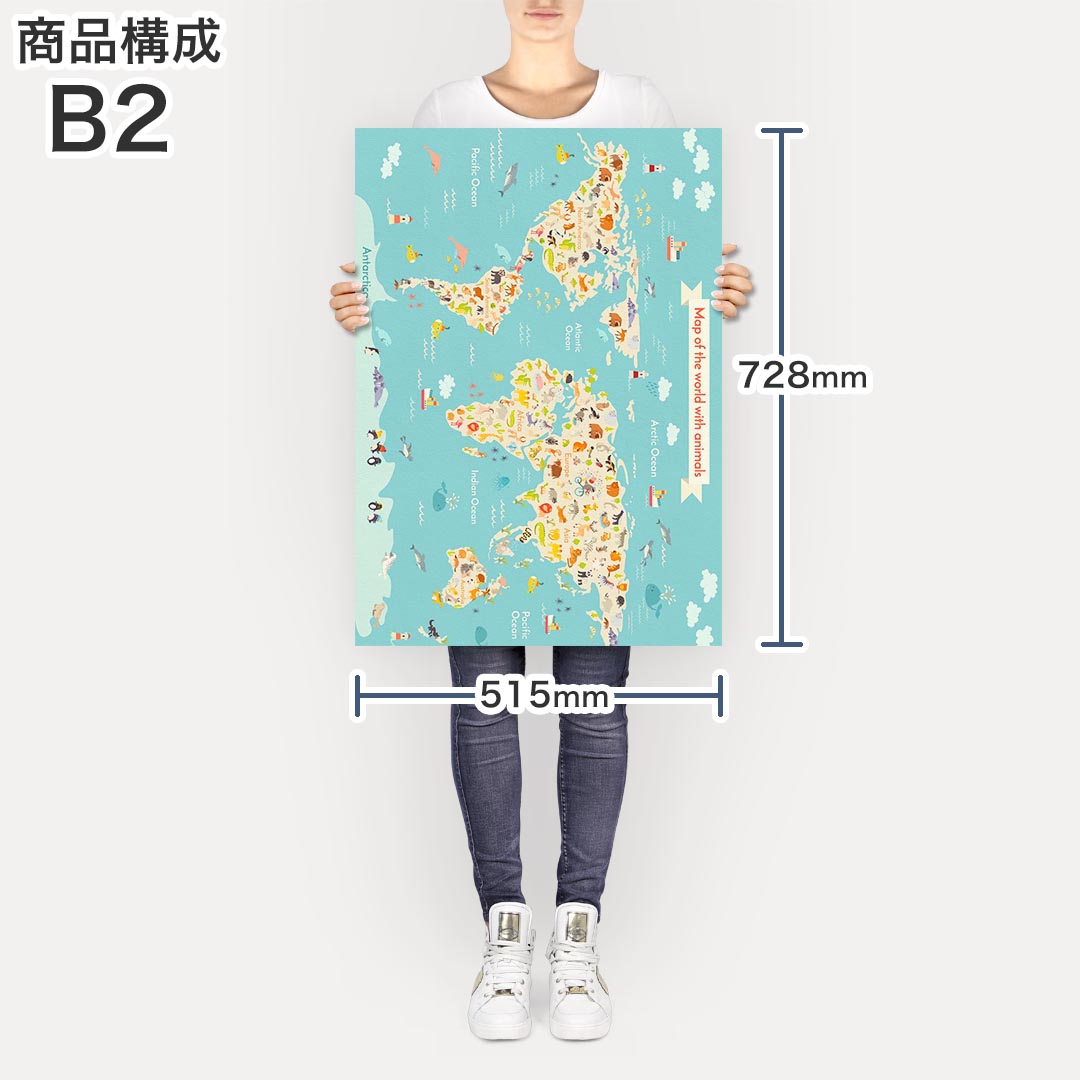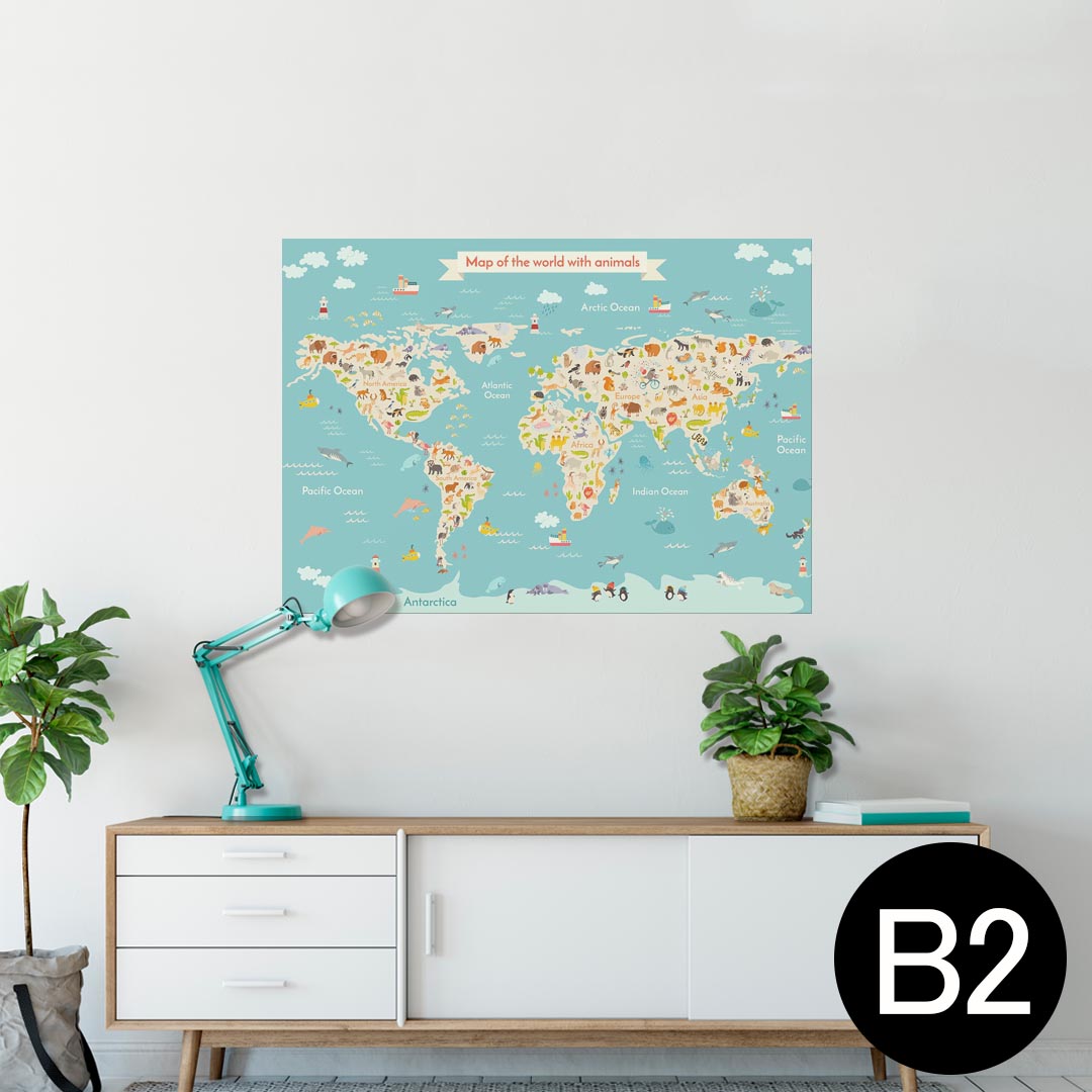 ポスター ウォールステッカー シール式ステッカー 飾り 257×364mm B4 写真 フォト 壁 インテリア おしゃれ 剥がせる wall sticker poster 014139 世界地図 動物